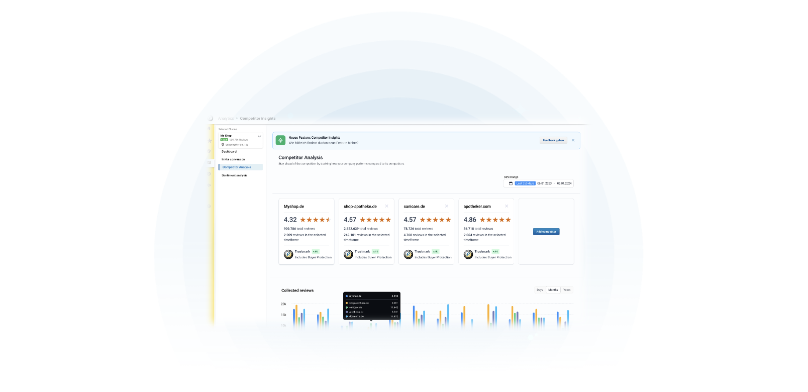 Die Wettbewerbsanalyse steht allen zahlenden Kund:innen in allen Märkten im Trusted Shops Kontrollzentrum zur Verfügung.